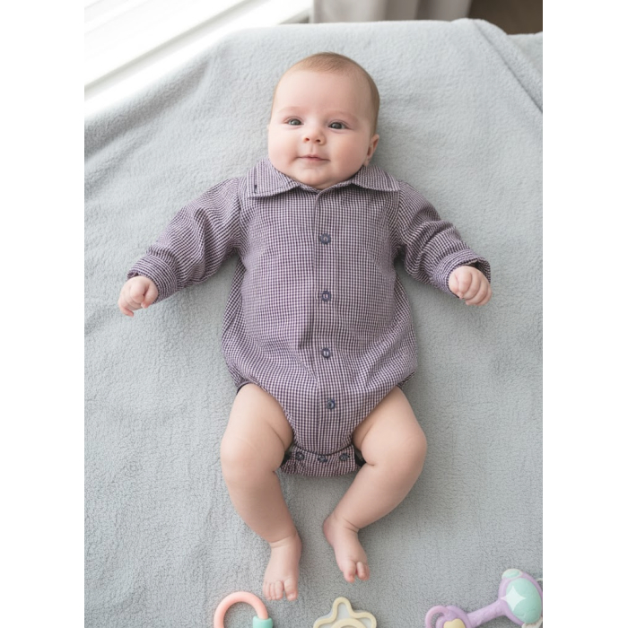Body Camisa Manga Longa, Enxoval para Bebê, Composto por 01 Peça. Disponível no Tamanho P. Detalhe: Gola, Cor: Estampado Xadrez, Tecido: Tricoline 100% Algodão.