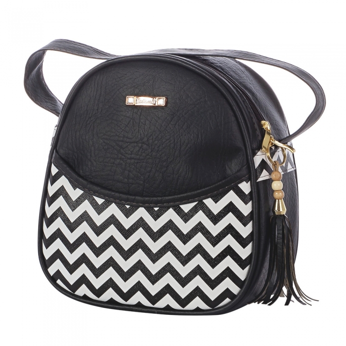 Bolsa Maternidade Tamanho P, Coleção Chevron, Enxoval para Bebê, Composto por 01 Peça, Detalhe: Chaveiro no Zíper, Cor: Preto/Chevron, Emborrachado 100% PVC.