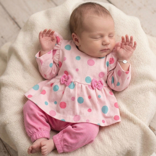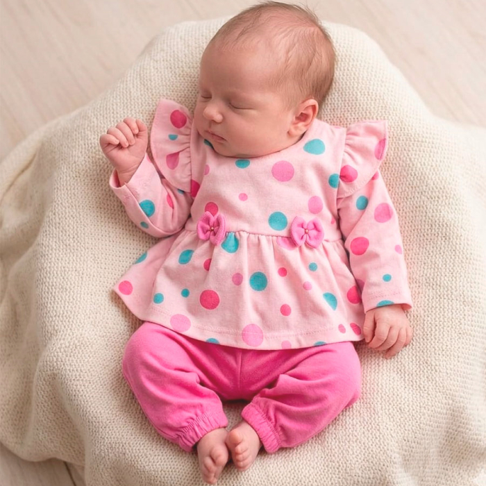 Apresentamos o conjunto que vai abraçar a sua bebê com todo o carinho que ela merece. Combinando dois tecidos premium de toque aveludado, este kit de blusa manga longa e mijão é a definição de conforto e estilo para o enxoval da sua princesa. A blusa manga longa possui botão nas costas de pressão para facilitar a troca.
