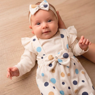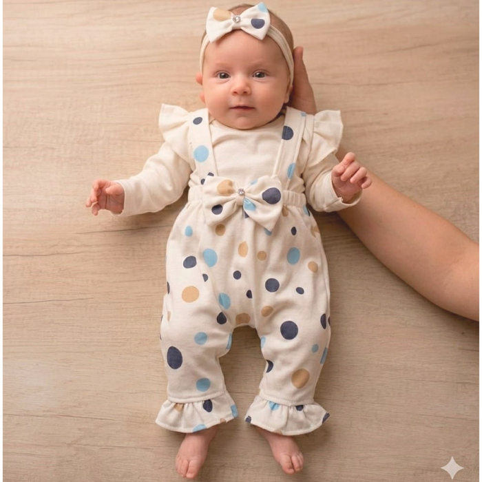 Se você busca delicadeza, conforto e um visual mais moderno para sua bebê, este conjunto é a escolha ideal. Com estampa clássica de poá (bolinhas) e detalhes em babados, ele é perfeito para sessões de fotos, festas de mesversário ou para aquele passeio especial. Com suspensórios fixos e um laço luxuoso na cintura. Possui elástico confortável nas perninhas e cintura.