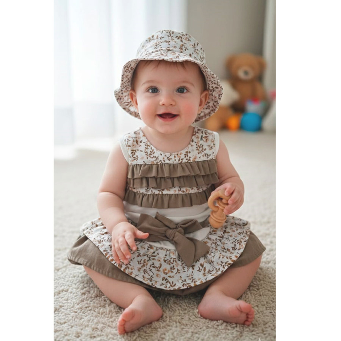 O Verão pede uma roupinha mais aconchegante e fresquinha para os passeios. E para alegria das mamães aqui você encontra este lindo conjunto composto por body manga regata e uma linda saia, e para complementar o look, acompanha um delicado chapéuzinho. Um conjunto elegante e cheio de estilo para sua princesinha esbanjar charme para onde for. Confeccionado em tecido malha e tricoline para deixar sua bebê super a vontade.