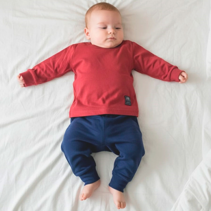 Conjunto Camiseta Manga Longa com Calça, Enxoval para Bebê, Coleção: Pulla Bulla, Composto por 02 Peças, Disponível no Tamanho P. Cor: Vermelho/Marinho, Tecido: Moletinho, Molecotton e Malha.