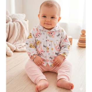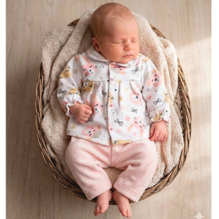Apresentamos o conjunto que vai abraçar a sua bebê com todo o carinho que ela merece. Combinando dois tecidos premium de toque aveludado, este kit de casaquinho e mijão é a definição de conforto e estilo para o enxoval da sua princesa. O casaquinho possui botão frontal de pressão para facilitar a troca.