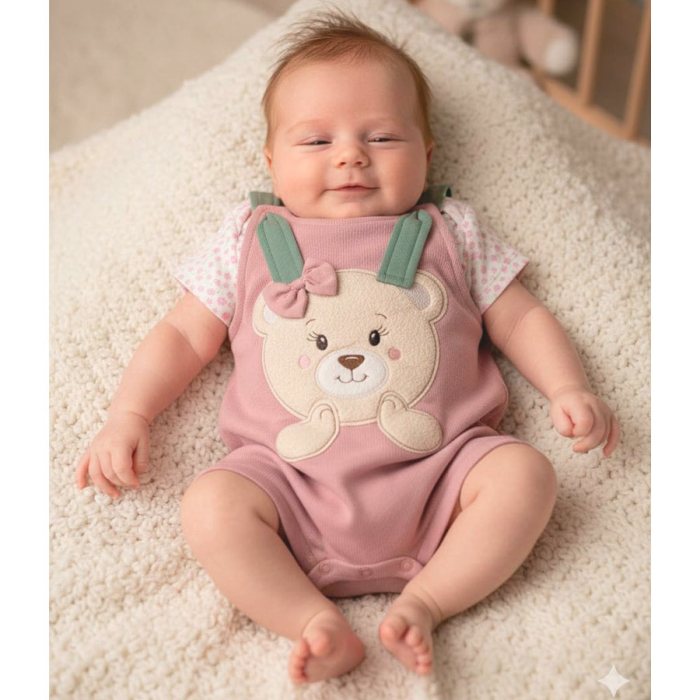 Os dias mais quentes pedem uma roupinha aconchegante e confortável, a Jardineira é uma ótima escolha, além de uma peça moderninha irá deixar sua princesinha super á vontade para os passeios e banho de sol. Esse modelinho de Jardineira é um encanto. Seu bebê vestido para arrasar. Fechamento por botões na alça da jardineira.