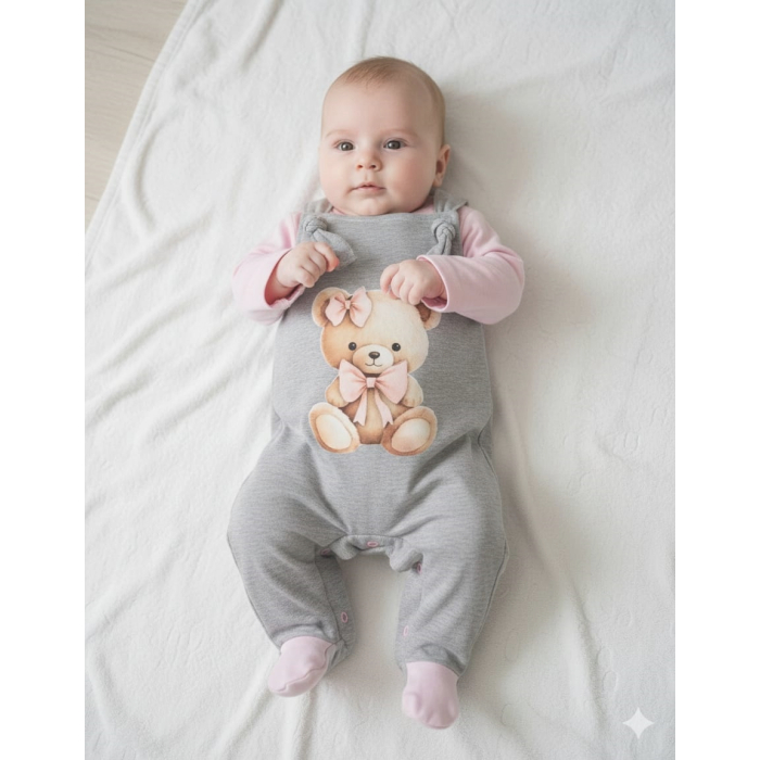 A Jardineira com o blusa manga longa formam um look charmoso e confortável para sua bebê. As peças podem ser utilizadas para compor looks diferentes. Confeccionado em malha, que possui toque macio para o contato com a pele sensível do bebê. O desenho em sublimação traz um toque especial e alegre para o macacão levando mais encanto para o look. Sua princesinha vestida para arrasar.