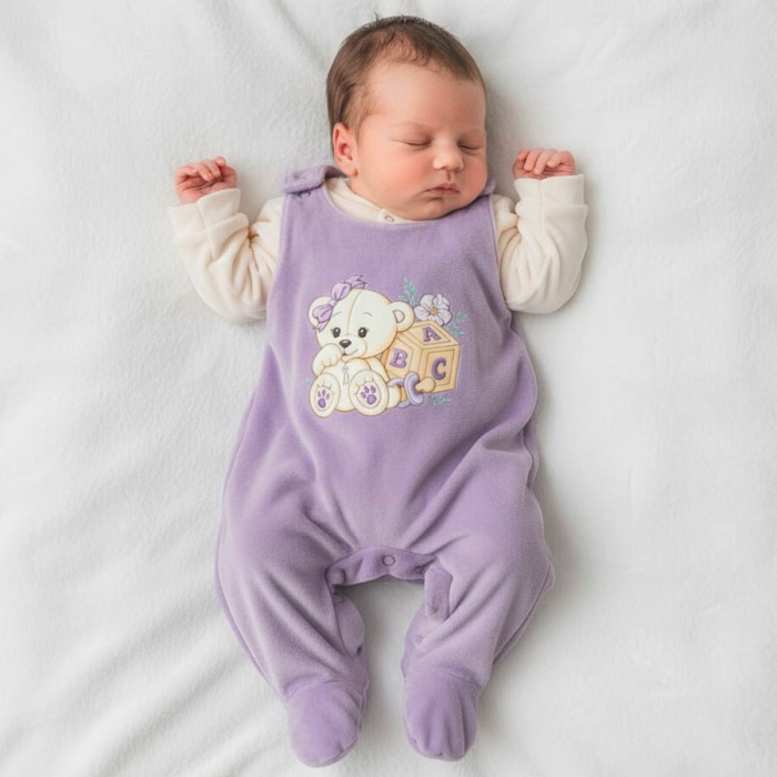 Jardineira com Camisa Manga Longa Petit Plush Ursinha Lilás