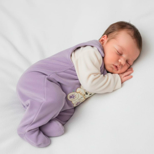 Jardineira com Camisa Manga Longa, Coleção: Petit Enxoval para Bebê Menina, Composto por 02 Peças, Disponível nos Tamanhos RN, P e M, Detalhe: Bordado, Cor: Lilás/Palha, Tecido: Plush 100% Algodão.