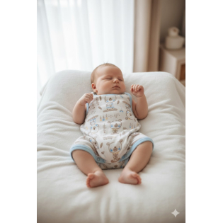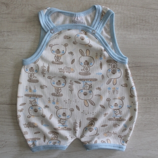 Jardineira Verão, Composto por 01 Peça, Disponível nos Tamanhos P, M e G, Detalhe: Botões de Pressão, Cor: Estampado/Azul, Tecido: Malha Canelada.