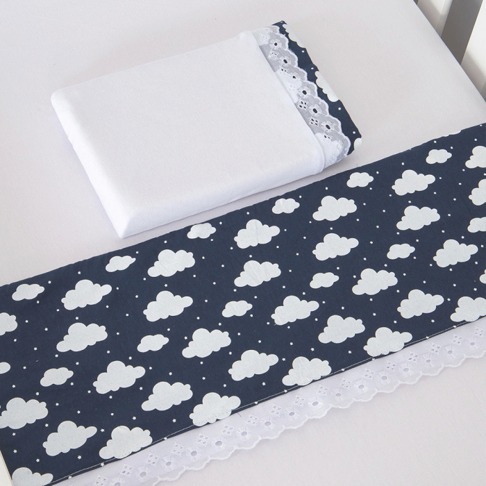 Jogo de Lençol Mini Berço Nuvem Estrelinha Marinho - 03 Peças