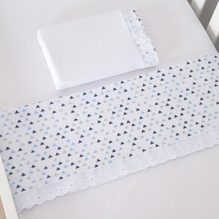 Jogo de Lençol para Berço Americano Triangulo Azul - 03 Peças
