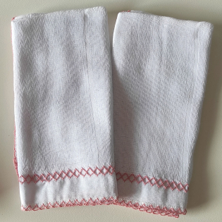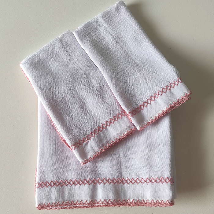 Kit Fraldas de Ombro e Boca Tecido Duplo, Enxoval para Bebê, Composto por 03 Peças, Detalhe: Acabamento Delicado em Picueta, Cor: Branco/Rosê, Tecido 100% Algodão.