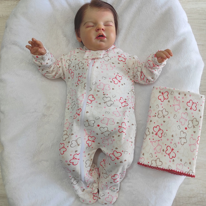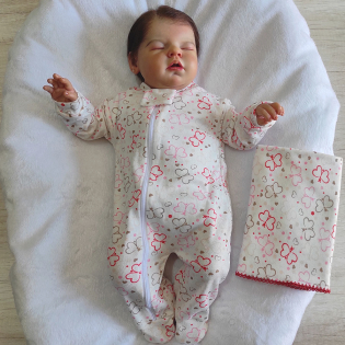 Kit Macacão Manga Longa em Ziper Pijama com Cueiro Soninho Borboleta Vermelha