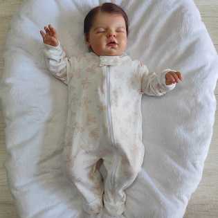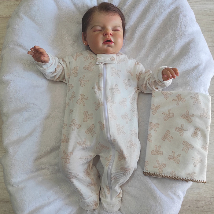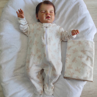 Kit Macacão Manga Longa em Ziper Pijama com Cueiro Soninho Lacinhos Nude