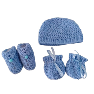 Kit Touca, Sapatinho e Luvinhas Recém Nascido Tricô Azul Pastel