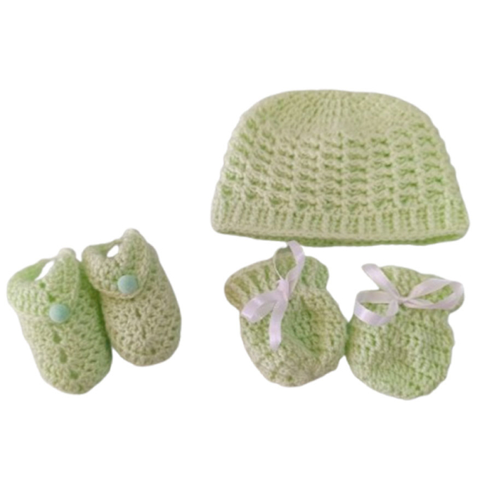 Kit Touca, Sapatinho e Luvinhas Recém Nascido Tricô Verde