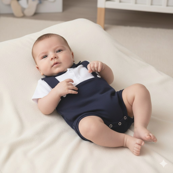Macacão Curto. Enxoval Bebê Menino. Fechamento com Botões de Pressão. Tamanhos Disponíveis: P, M e G.