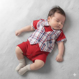 Macacão Curto Enxoval para Bebê Menino. Disponível nos Tamanhos P, M e G.