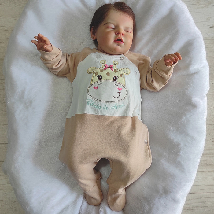 Macacão Manga Longa Boomer Menina Malha Suedine Girafinha Nude