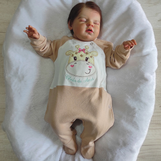 Macacão Manga Longa, Coleção: Boomer. Enxoval para Bebê Menina, Composto por 01 Peça, Disponível nos Tamanhos RN, P e M. Detalhe: Bordado. Cor: Nude/Palha, Tecido: Malha Suedine 100% Algodão.