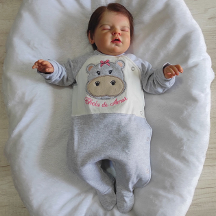 Macacão Manga Longa Boomer Menina Malha Suedine Hipopótamo Mescla