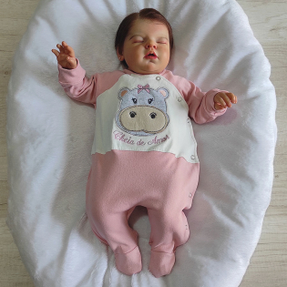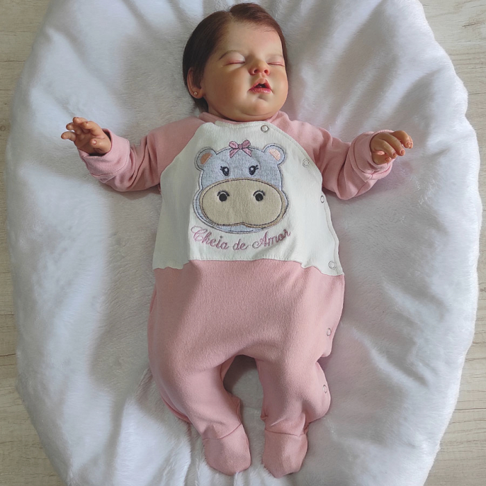 Macacão Manga Longa Boomer Menina Malha Suedine Hipopótamo Rosê