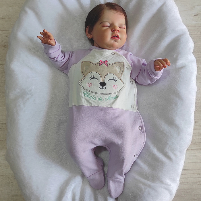 Macacão Manga Longa Boomer Menina Malha Suedine Raposa Lilás