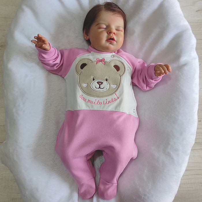 Macacão Manga Longa Boomer Menina Malha Suedine Ursinha Rosa Chiclete