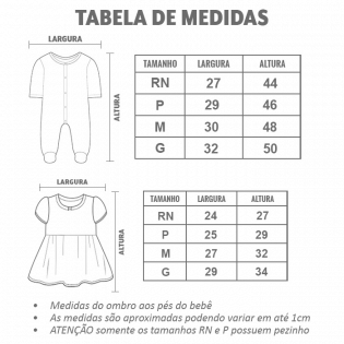 Atenção: Apenas o Tamanho RN e P Possuem Pezinho.