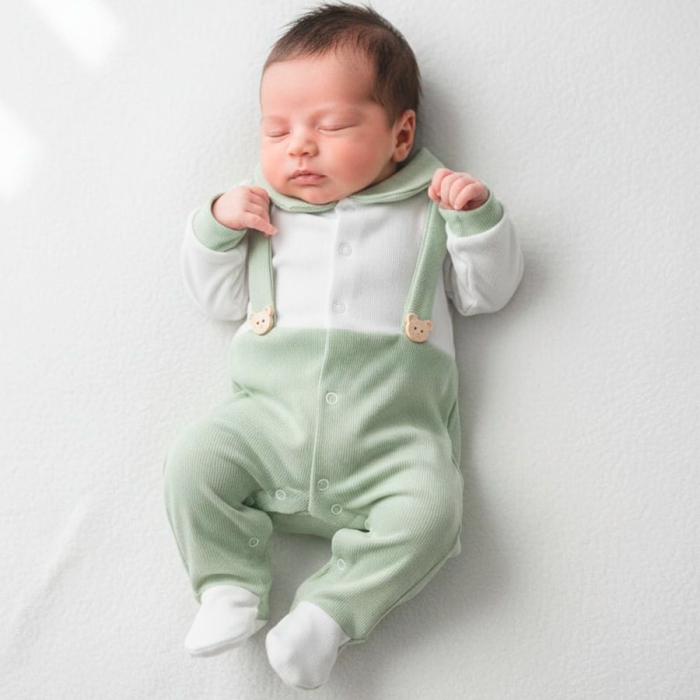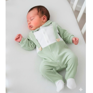 Macacão Manga Longa Doce Sonho Liso Enzo Verde com Palha