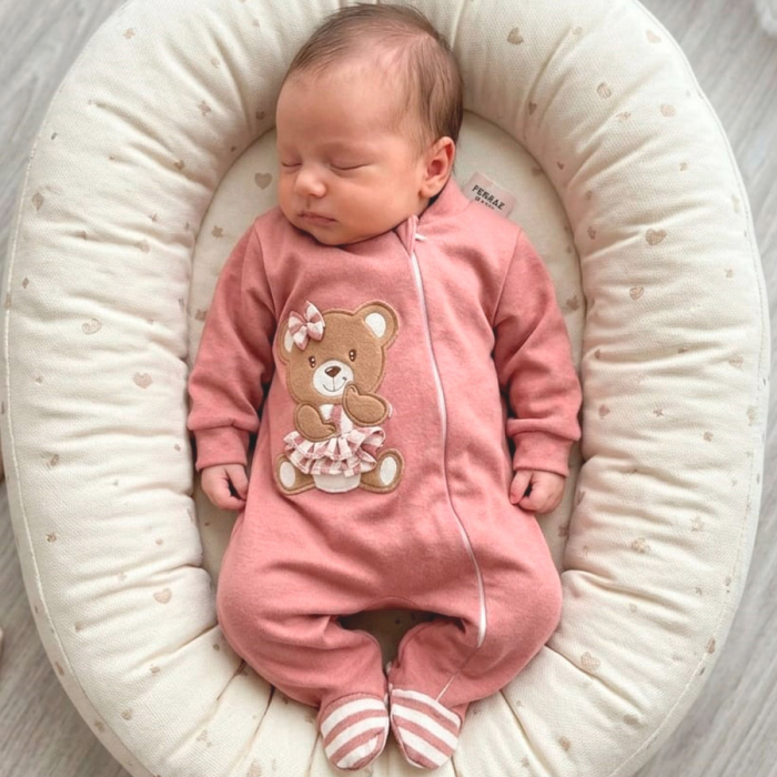 O zíper frontal discreto com proteção interna facilita na hora de vestir e trocar, garantindo praticidade no dia a dia, além de um acabamento delicado que não incomoda a pele sensível do bebê. O design conta com o bordado perfeito para um visual fofo e aconchegante. Um macacão pensado para unir funcionalidade, estilo e muito carinho em cada detalhe.
