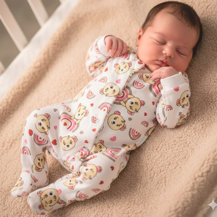 O zíper frontal discreto com proteção interna facilita na hora de vestir e trocar, garantindo praticidade no dia a dia, além de um acabamento delicado que não incomoda a pele sensível do bebê. O design conta com estampas suaves e modernas, perfeitas para um visual fofo e aconchegante. Um macacão pensado para unir funcionalidade, estilo e muito carinho em cada detalhe.
