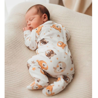 Macacão Manga Longa, Coleção: Kids, Enxoval para Bebê, Composto por 01 Peça, Disponível nos Tamanhos RN, P e M. Cor: Bege/Estampado, Tecido: Moletinho 80% Algodão 20% Poliester. ATENÇÃO: TODOS OS TAMANHOS POSSUI PEZINHO FECHADO.