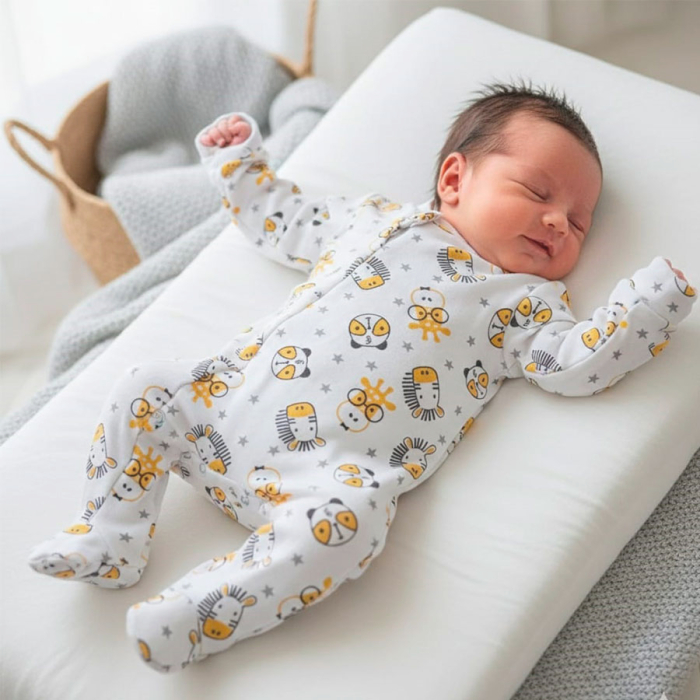 O zíper frontal discreto com proteção interna facilita na hora de vestir e trocar, garantindo praticidade no dia a dia, além de um acabamento delicado que não incomoda a pele sensível do bebê. O design conta com estampas suaves e modernas, perfeitas para um visual fofo e aconchegante. Um macacão pensado para unir funcionalidade, estilo e muito carinho em cada detalhe.