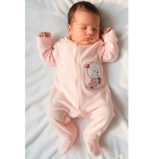 Macacão Manga Longa Menina Plush Canelado Ursinha Cake Salmão