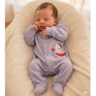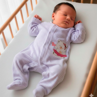 Macacão Manga Longa Menina Plush Canelado, Enxoval para Bebê, Composto por 01 Peça, Disponível nos Tamanhos RN, P, M e G. Detalhe: Bordado, Cor: Listrado Lilás, Tecido: Plush 80% Algodão 20% Poliester. ATENÇÃO: TAMANHO M POSSUI PEZINHO REVERSIVEL.