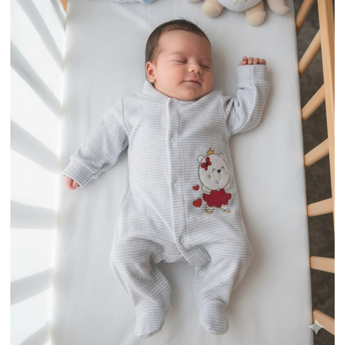 Macacão Manga Longa Menina Plush Canelado Ursinha Coroa Mescla