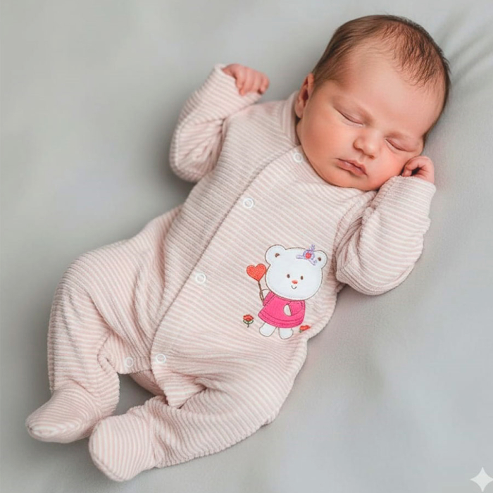 Macacão Manga Longa Menina Plush Canelado Ursinha Nude