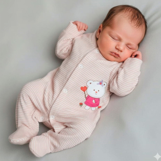 Macacão Manga Longa Menina Plush Canelado, Enxoval para Bebê, Composto por 01 Peça, Disponível nos Tamanhos RN, P, M e G. Detalhe: Bordado, Cor: Listrado Nude, Tecido: Plush 80% Algodão 20% Poliester. ATENÇÃO: TAMANHO M POSSUI PEZINHO REVERSIVEL.