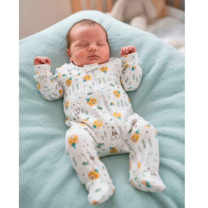 Macacão Manga Longa Menino Pijaminha em Ziper Ursinho Cabana