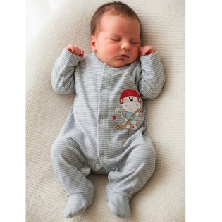 Macacão Manga Longa Menino Plush Canelado, Enxoval para Bebê, Composto por 01 Peça, Disponível nos Tamanhos RN, P, M e G. Detalhe: Bordado, Cor: Listrado Mescla, Tecido: Plush 80% Algodão 20% Poliester. ATENÇÃO: TAMANHO M POSSUI PEZINHO REVERSIVEL.