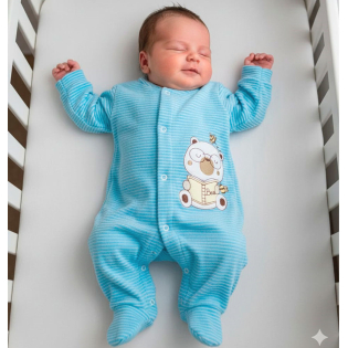 Macacão Manga Longa Menino Plush Canelado, Enxoval para Bebê, Composto por 01 Peça, Disponível nos Tamanhos RN, P, M e G. Detalhe: Bordado, Cor: Listrado Azul, Tecido: Plush 80% Algodão 20% Poliester. ATENÇÃO: TAMANHO M POSSUI PEZINHO REVERSIVEL.