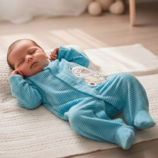Macacão Manga Longa Menino Plush Canelado Ursinho Bee Azul