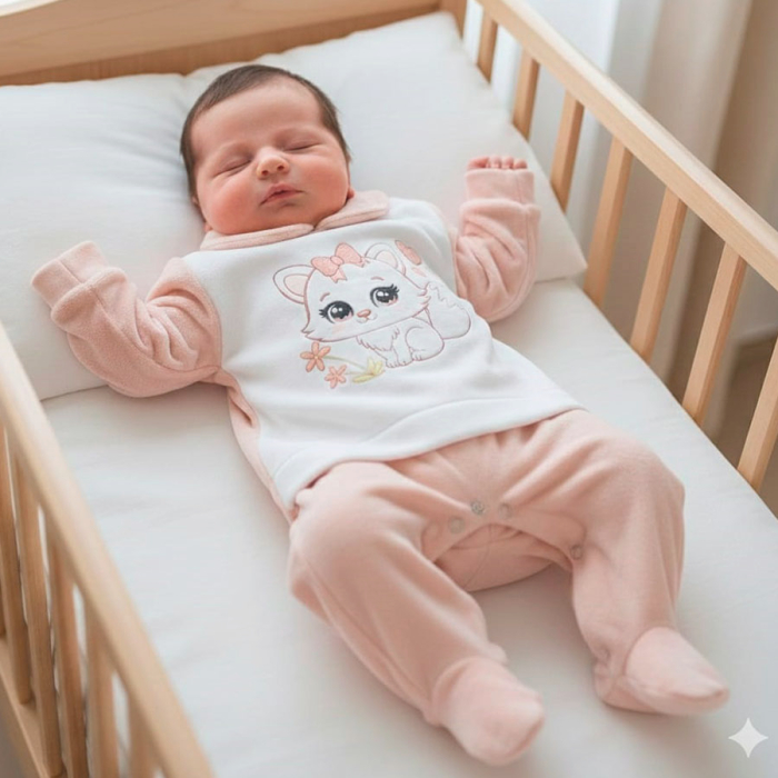 Macacão Manga Longa Petit Plush Sublimado Gatinha Rosê