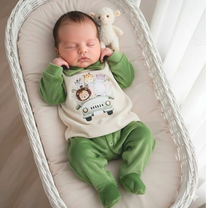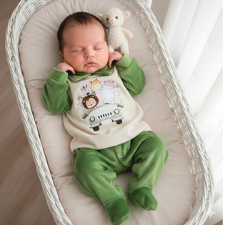 Encante-se com o macacão manga longa para bebê menino em plush quentinho, pensado para envolver seu pequeno com aconchego e suavidade desde os primeiros dias. Confeccionado em plush macio e de alta qualidade, são ideais para manter o bebê aquecido com total conforto. O design delicado traz detalhes encantadores no busto, com uma estampa em sublimação, que dão um toque romântico e sofisticado à peça. Fechamento por botões de pressão.