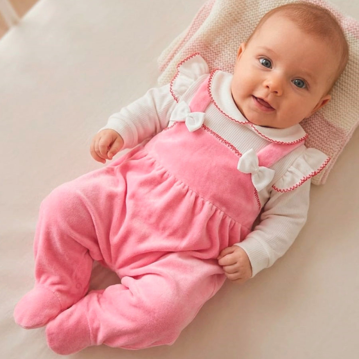 Encante-se com o macacão manga longa para bebê menina em plush quentinho, pensado para envolver sua pequena com aconchego e suavidade desde os primeiros dias. Confeccionado em plush macio e de alta qualidade, são ideais para manter o bebê aquecido com total conforto. O design delicado traz detalhes encantadores no busto, com lacinhos com pérola e acabamento em picueta que dão um toque romântico e sofisticado à peça.
