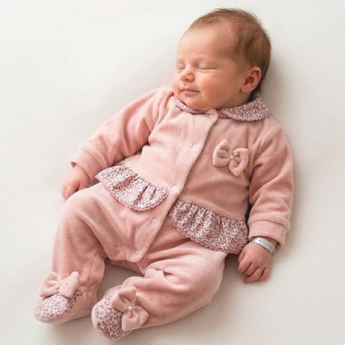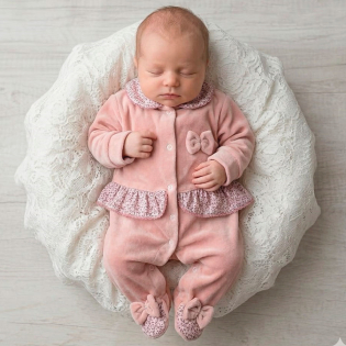 Encante-se com o macacão manga longa para bebê menina em plush quentinho, pensado para envolver sua pequena com aconchego e suavidade desde os primeiros dias. Confeccionado em plush macio e de alta qualidade, são ideais para manter o bebê aquecido com total conforto. O design delicado traz detalhes encantadores no busto, com lacinhos com pérola e acabamento em picueta que dão um toque romântico e sofisticado à peça.