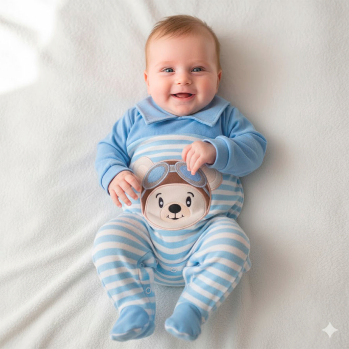 O Macacão é a peça coringa que não pode faltar no enxoval do seu bebê, além de ser muito utilizado é um item tradicional que pode ser usado em todas ocasiões, e para acompanhar um lindo bordado de urso aviador que é um charme. Esse modelinho é um encanto que irá proteger e aquecer seu príncipe.