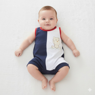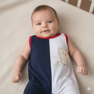 Macacão Regata Verão, Enxoval para Bebê Menino, Composto por 01 Peça. Os Dias mais Quentes pedem uma Roupinha Aconchegante e Confortável, O Macacão Regata irá deixar seu Bebê Super á Vontade e Charmoso. Com Botões de Pressão para Facilitar na Troca de Fraldas.