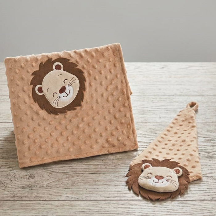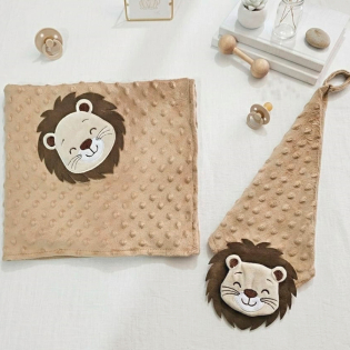 Proporcione ao seu bebê o toque mais macio e aconchegante do mercado! Este kit foi desenvolvido pensando no bem-estar e na segurança dos pequenos, unindo a funcionalidade de uma manta quente com o acolhimento emocional da naninha com tema de leãozinho.