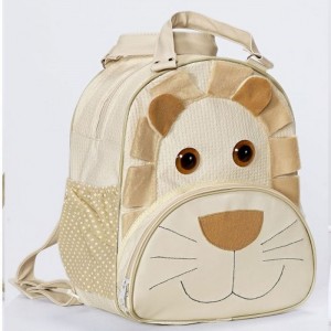 Mochila Tamanho G com Tema de Bicho, Coleção Safari, Enxoval para Bebê, Composto por 01 Peça, Detalhe: Cara de Bicho, Cor Palha.